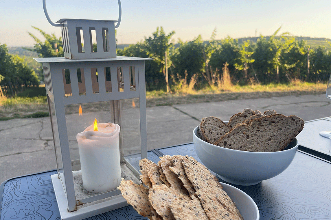 Oben angekommen genießen wir vier Weine ausgewählter Winzer aus den Lagen, die uns direkt zu Füssen liegen. Dazu gibt’s fränkische Tapas in lockerer Runde – perfekt, um den Abend entspannt ausklingen zu lassen. Nebenbei erfahren Sie mehr über das fränkische Weinland, seine Besonderheit, Geschichte und aktuelle Insider-Tipps.