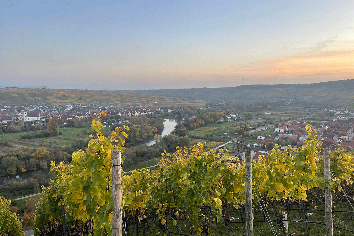 Lust auf einen besonderen Abend? Dann kommen Sie mit auf unseren Weinerlebnis-Spaziergang rund um Volkach! Wir starten am historischen Volkacher Marktplatz und schlendern durch Streuobstwiesen und Weinberge, vorbei an der Vogelsburg, bis hinauf zum terroir f – dem magischen Ort des Frankenweins hoch über der Mainschleife.