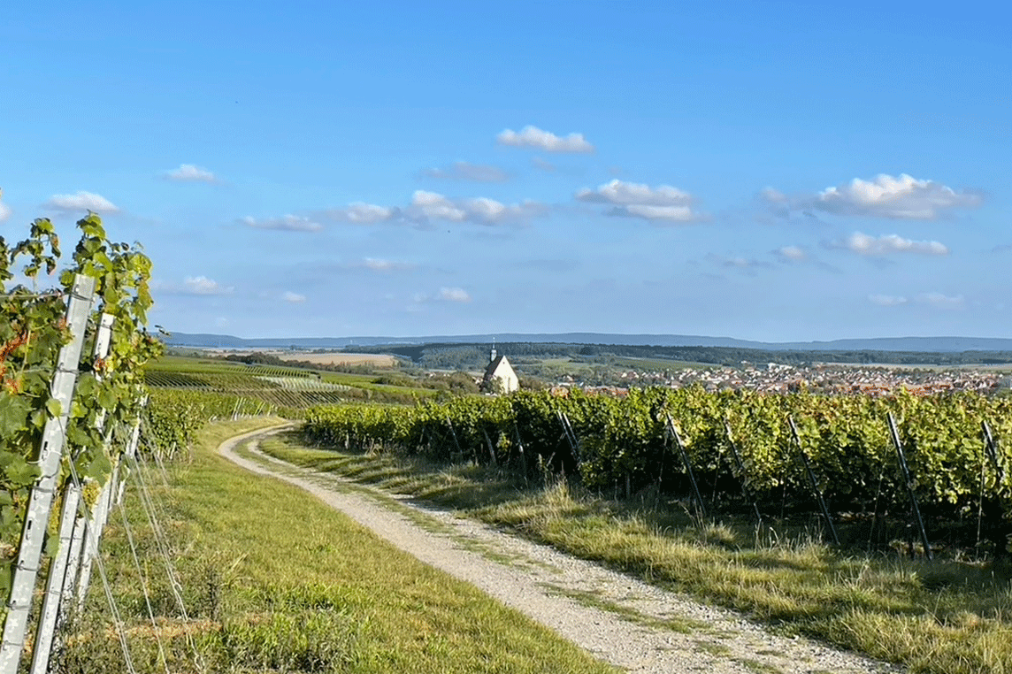 Starte entspannt in den Tag und komm mit auf einen Weinerlebnis-Wanderung! Wir treffen uns um 11:00 Uhr am Volkacher Marktplatz und machen uns gemeinsam auf den Weg: hinauf zur Wallfahrtskirche Maria im Weingarten, über die Weinberge und Streuobstwiesen, bis nach Fahr und wieder zurück.